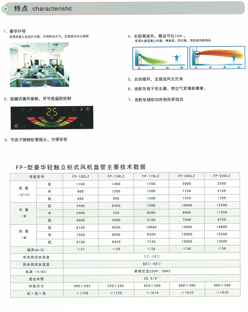柜式風(fēng)機(jī)盤管空調(diào)機(jī)組,外形美觀,結(jié)構(gòu)流暢,重量輕。面板與框架非剛性接觸,工藝性好,配合緊密,漏風(fēng)率低。接水盤設(shè)有大排水坡度,確保冷凝水排放順暢。空氣過濾網(wǎng)拆裝方便,有多種材質(zhì)可選。它廣泛應(yīng)用于賓館、飯店、工廠、醫(yī)院,展覽館,以及辦公大樓等多房間或大空間工業(yè)和民用建筑的空調(diào)場合,以滿足降溫去濕,采暖等要求,為人們創(chuàng)造一個清新,寧靜四季如春的工作和生活環(huán)境。為客戶提供全新優(yōu)質(zhì)的產(chǎn)品,公司生產(chǎn)的風(fēng)機(jī)盤管采用標(biāo)準(zhǔn)型,結(jié)構(gòu)簡潔緊湊,占用空間小,便于裝拆和維修。機(jī)體運(yùn)轉(zhuǎn)平穩(wěn)、噪音低、水阻小、重量輕、效率高、壽命長,是一種理想的空調(diào)設(shè)備。