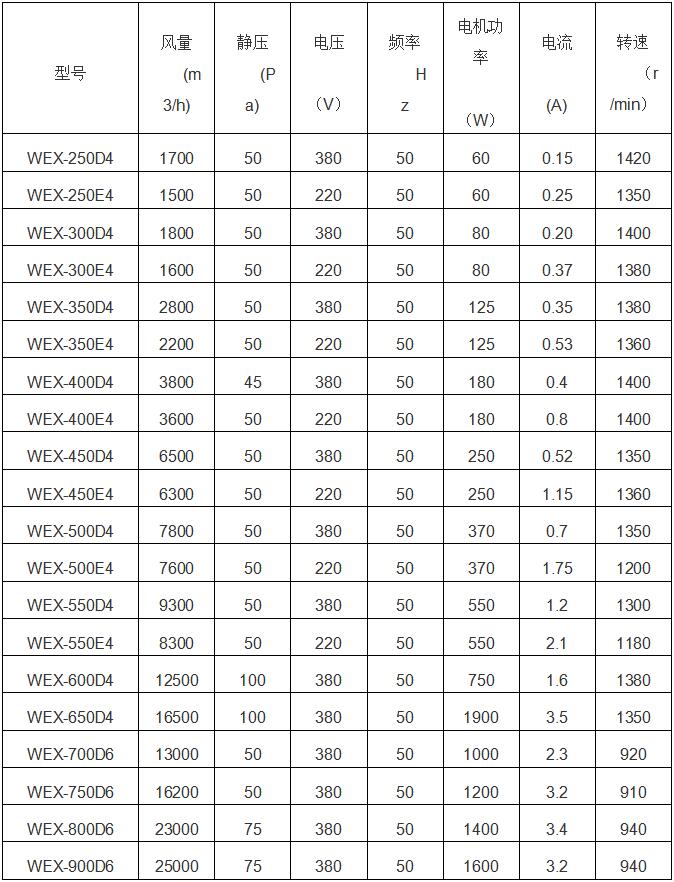 WEX系列風機一般用于邊墻壁式排風,配設45°防雨罩(或特殊制造成60°)和防蟲網(夜間可防止昆蟲循燈光飛入車間)。可按需要制成邊墻送風機型號為DWSP(WSP),配設90°防雨罩(防風、雨、塵)和防蟲網(夜間可防止昆蟲循燈光飛入車間)。